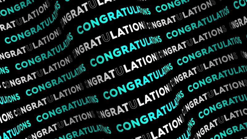 grattis cyan promo textflöde på våganimationsslingan. grattis ord linje ström av kurvan sömlös bakgrund. kör kreativ ticker marknadsföring reklam kinetisk typografi. Pro Video
