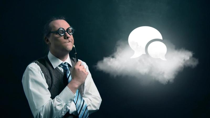 rolig nörd eller nörd som vill flyga moln med roterande pratbubblan ikon Gratis Video