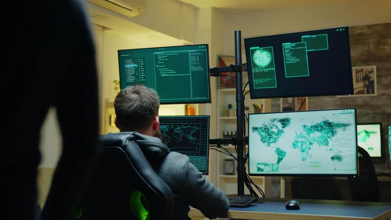 hacker som visar tumme upp tecken medan programmering en virus till ge sig på de regering säkerhet. Pro Video