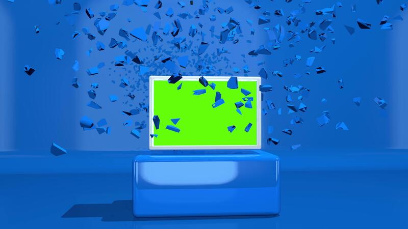 intro video. grön skärm inuti en blå låda exploderande mot blå bakgrund. 3d animering Gratis Video