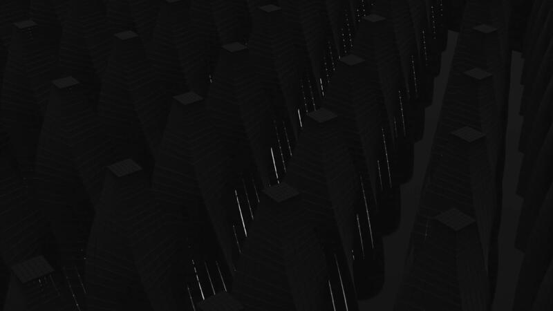 trogen rader av kottar. design. svart rader av koner stå ut med neon lysande rader i mörk Plats. cybernetiska koner med neon rader bära information data Pro Video