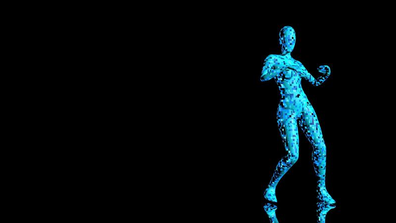 blå abstrakt kvinna figur med pixelated effekt dans mot svart bakgrund. slinga sekvens. 3d animering Gratis Video