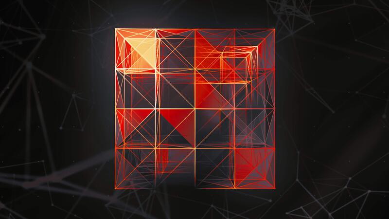 linjär konstruktion i geometrisk kub. rörelse. färgrik rader är monterad in i kub i 3d utsprång. färgrik kub av rader och triangel- förbindelse Pro Video
