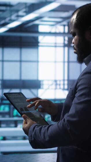 vertikal systemet administratör i server rum etablering montera nytt beordrade lagring enhet. programvara utvecklare arbetssätt i data Centrum anläggning hus lagring rackmontering, kamera en Pro Video
