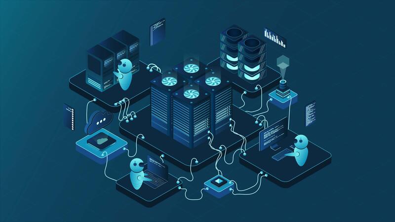 isometrisk data Centrum eller server rum animation. data Centrum förbindelse nätverk. moln lagring. isometrisk hög teknologi begrepp. 4k animerad i isometrisk stil Pro Video
