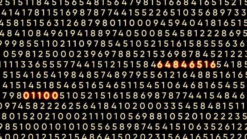numerisk koda i matris dator program. rörelse. lysande tal i program koda ström. markerad neon tal i digital ström Pro Video