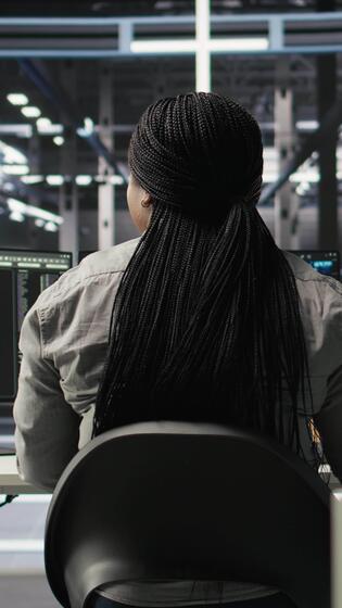data Centrum arbetstagare gäller djup inlärning nod träd programmering till analysera datauppsättningar för operativ insikter. server nav administration användningar visuell programmering till identifiera mönster i anläggning data, kamera en Pro Video