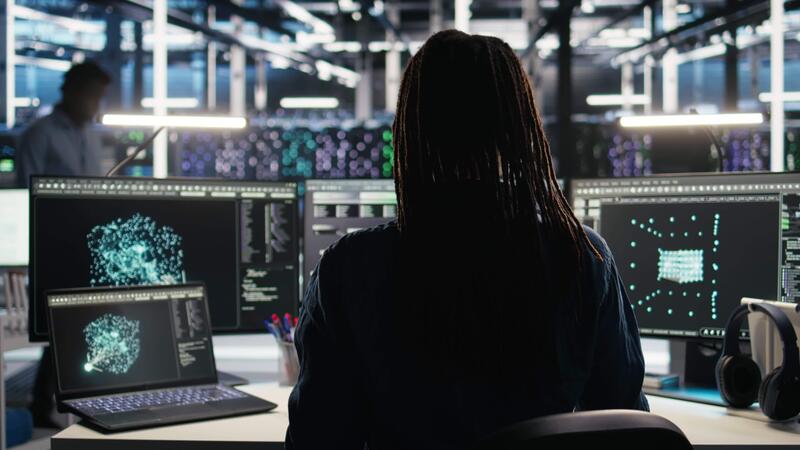 server bruka programvara utvecklare tolkar data analys grafer. data Centrum specialist använder sig av artificiell intelligens program som visar prediktiv systemet metrik, kamera en Pro Video