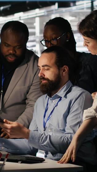 vertikal data Centrum systemet administratörer utför underhåll på superdatorer Begagnade för ai bearbetning. team hantera server nav riggar Begagnade för djup inlärning Träning, ser över företag diagram, kamera en Pro Video