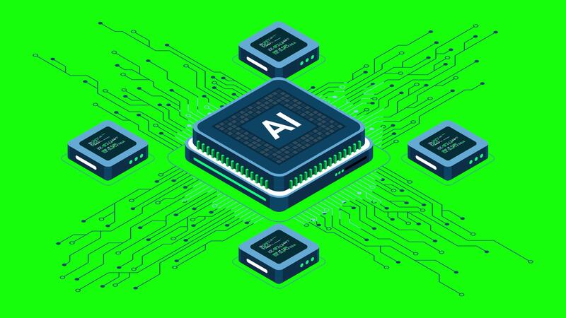 isometrisk artificiell intelligens chip animation. artificiell intelligens begrepp. trogen mikrochip processor. rörelse grafisk. 4k animerad i isometrisk Pro Video