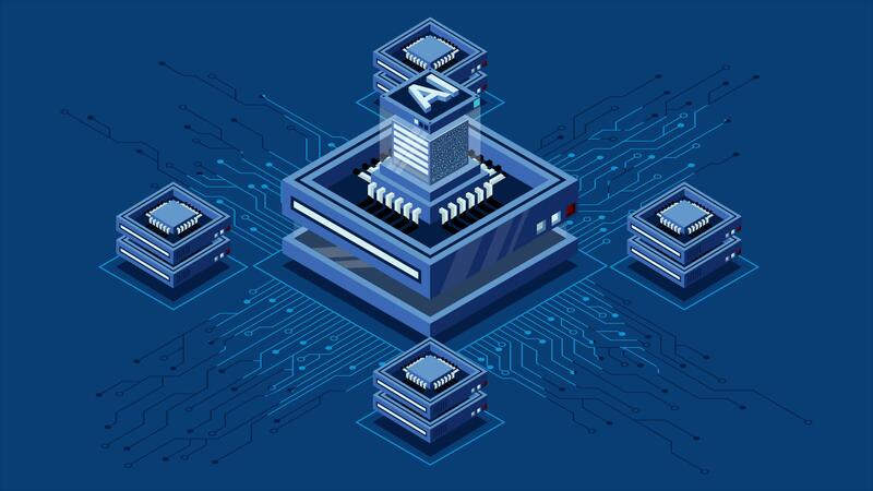 isometrisk artificiell intelligens chip animation. artificiell intelligens begrepp. trogen mikrochip processor. rörelse grafisk. 4k animerad i isometrisk. Pro Video