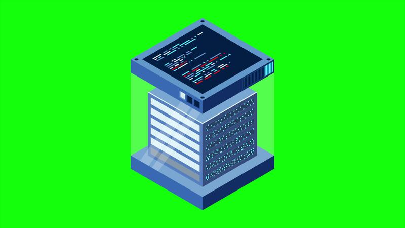 isometrisk trogen server animation. isometrisk databas eller data Centrum. abstrakt blockchain. dator lagring. moln lagring. 4k animerad Pro Video