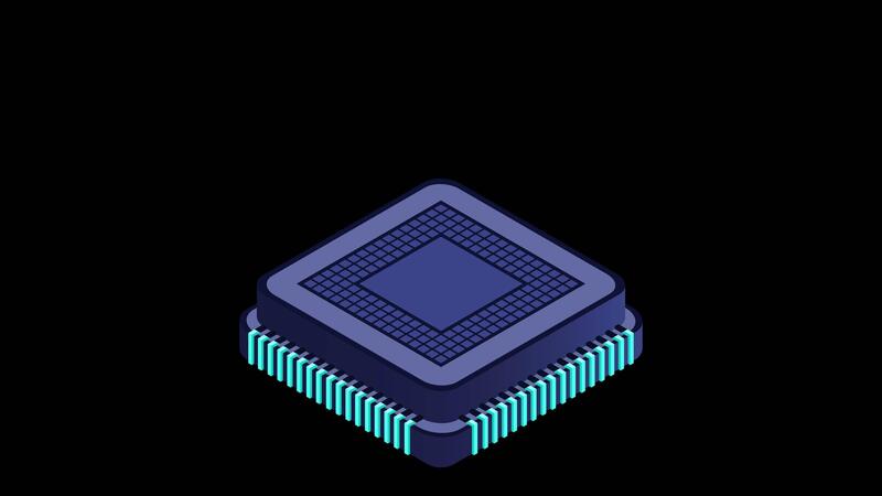 isometrisk artificiell intelligens chip animation. artificiell intelligens begrepp. trogen mikrochip processor. rörelse grafisk. transparent bakgrund Pro Video