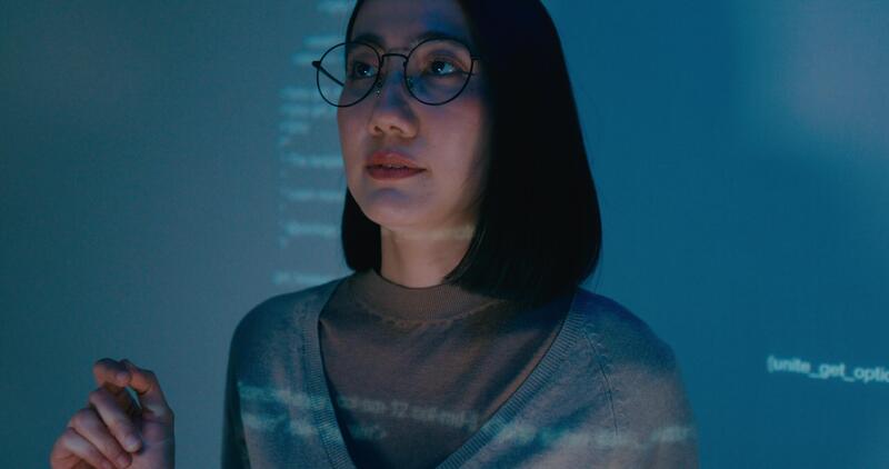 grupp Asien kvinna programvara utvecklare mentor ledare chef prata strategi planen till verkställande skriva prompt ai bot den app program nomad, spel, designer, data Centrum. utskjutande bildspel koda. Pro Video