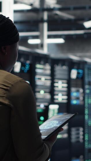 vertikal data Centrum programvara utvecklare håller på med ai data analys på läsplatta till uppgradera infrastruktur. server nav den expert- använder sig av enhet till klara av lagring system för djup inlärning Träning datauppsättningar Pro Video