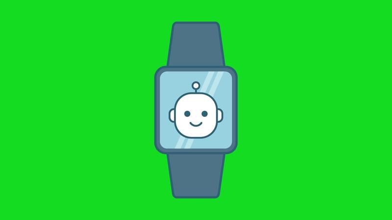 wearable assistent animering terar en smart klocka med en små ai ansikte på de skärm. idealisk för tech innovation, smart enhet, och digital assistent begrepp. Pro Video