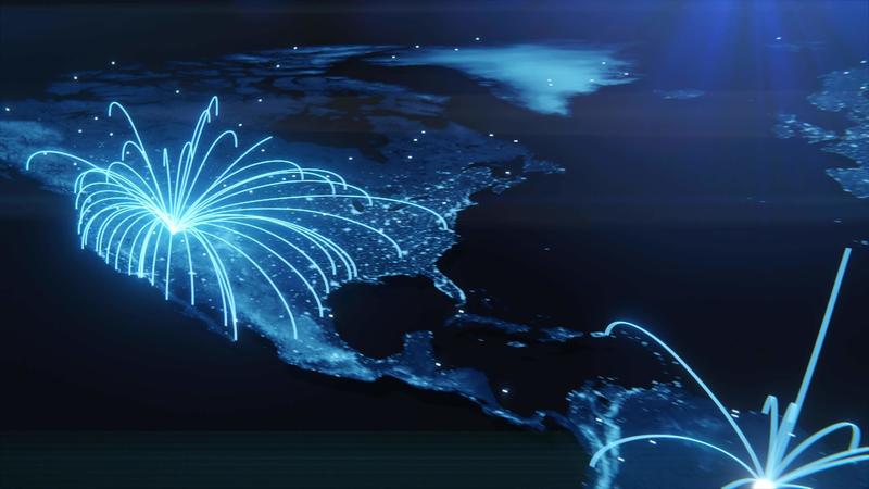 tech jorden globalisering i 3d-animation. globala affärsprickar på roterande planet. Pro Video